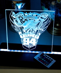 - This item has a small footprint yet makes a large statement with both attention to detail in the crest engraving and the light it gives off.