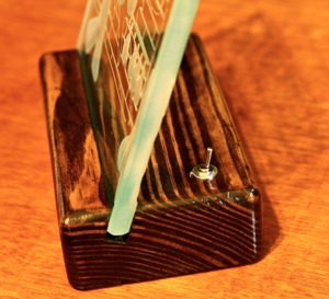 -The base is handcrafted out of hardwood and micro LED lighting and electronics have been installed to light the art.